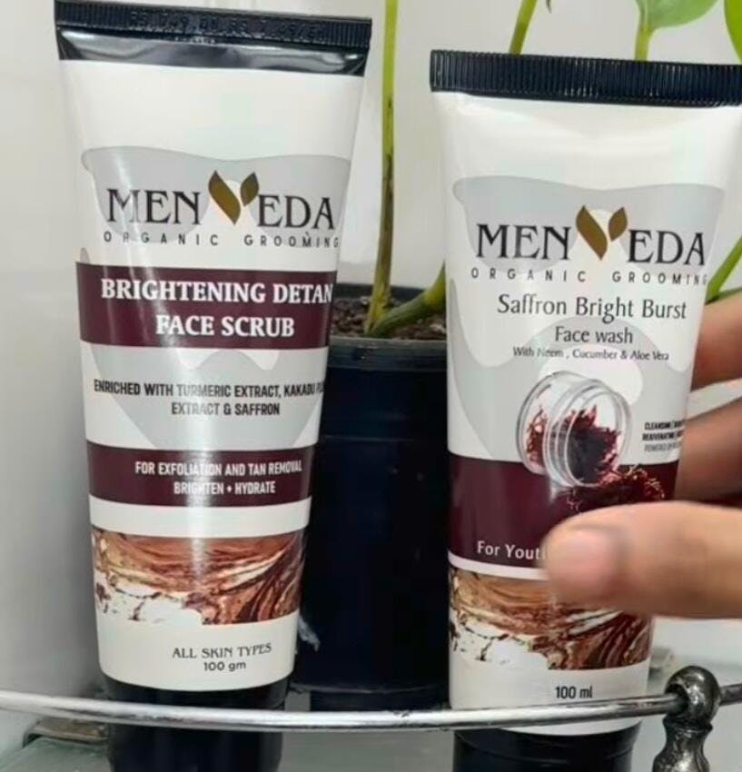 Menveda Bright Burst Facewash (100 ml ) , Menveda Brightening Detan Scrub (100 g )